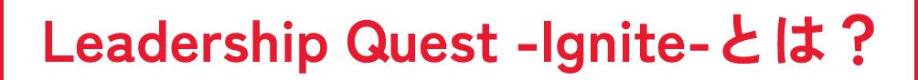 自分の可能性に火を灯し(Ignite)、内に眠るリーダーシップを探究(Quest)することで、「やれる」という手応えと「やる」と決める軸(Core)を探す道標となる――それが、Leadership Quest -Ignite-です。